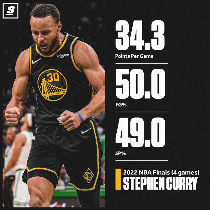 总决赛四场打完,库里场均狂砍34.3分6.3篮板3.8助攻2抢断,投篮命中率为50%,三分命中率为49%,是勇士和凯尔特人两队表现最好的球员,展现超巨该有的样子。