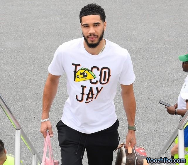 塔图姆面带微笑走上舷梯,他的T恤写着“TACO JAY”,让人不由想起常常高喊TACO TUESDAY的詹姆斯。塔图姆前4场的两分钟命中率很糟糕,美媒给出总决赛数据,塔图姆的两分球51投14中,命中率为27.5%,三分球31投14中,命中率为45.2%。天王山之战,塔图姆要力争迎来反弹,帮助球队拿下胜利。