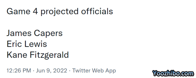 24直播网06月11日讯 ,总决赛G4的裁判名单已经提前曝光,执哨这场比赛的裁判将是19号裁判詹姆斯-卡珀斯,5号裁判卡恩-菲兹格拉德和42号裁判埃里克-刘易斯。