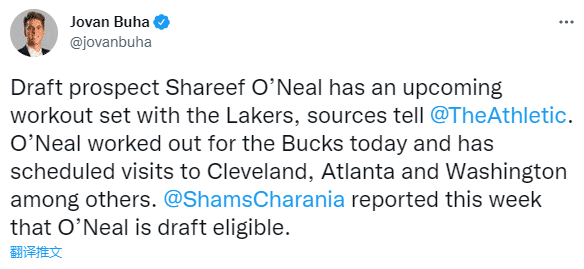 24直播网06月10日讯 据洛杉矶记者Jovan Buha报道,消息人士透露,NBA名宿奥尼尔之子沙里夫-奥尼尔计划参加湖人试训,今日沙里夫将为雄鹿试训,并计划前往克利夫兰、亚特兰大和华盛顿等地参加试训。