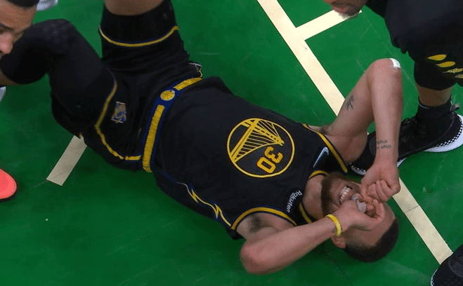 在这一次地板球争夺过程中,库里的腿部被对手压住,躺在地板上十分痛苦,好像受伤了;赛后格林回应第6犯是为保护库里,听到库里惨叫才推人的,表示:你们总是很担心,我看到库里倒地拼抢了。就是这样。我犯规把斯玛特推开,因为库里在人堆下面惨叫。事情就是这样,他主动犯规把斯玛特从库里腿上推开。