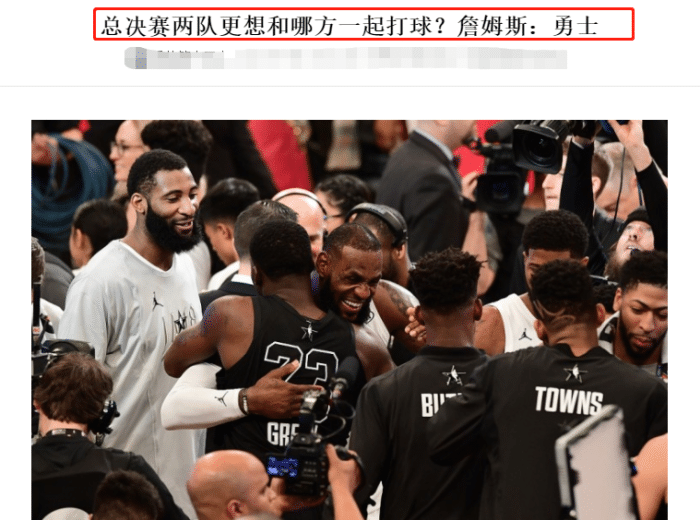 被问及更愿意和哪支剩余的季后赛球队合作时,詹姆斯的答案是勇士队。“我想要去勇士打球,想要和追梦格林一起打一场激烈的比赛,我想要有人在场上用垃圾话刺激我”。詹姆斯在今夏可以选择是否提前续约,如果离开湖人队的话,现在来看,骑士和勇士等球队会是最热门下家。