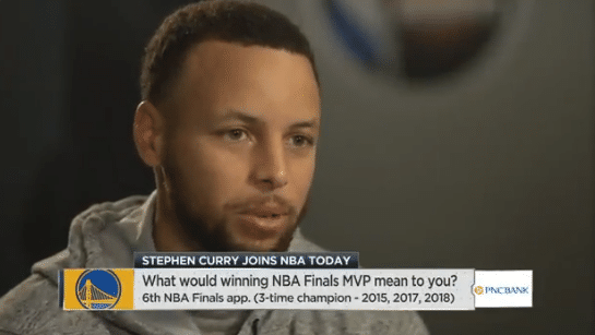 谈到总决赛MVP,库里表示无论如何,赢得FMVP那个时间肯定会非常开心,想要能够体验一下。