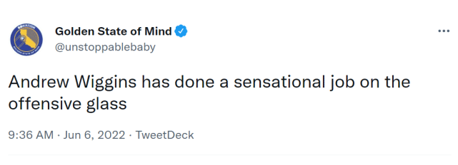24直播网06月07日讯 ,昨天勇士107-88击败凯尔特人,将总比分扳成1-1平。比赛中,维金斯罕见生气的瞬间曝光。球迷转发这一幕表态:爱这样的维金斯!