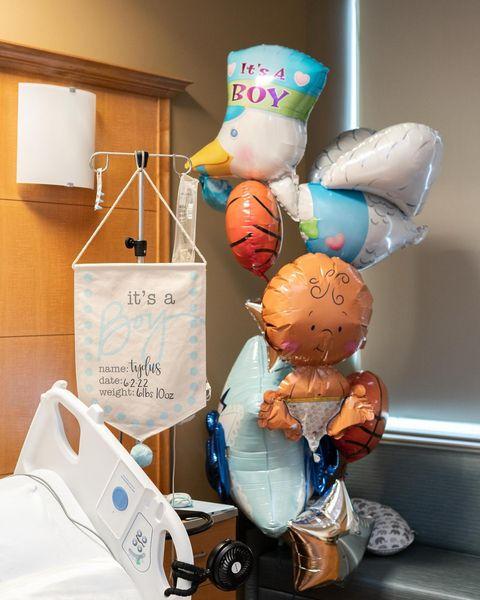 特雷-杨晒出他和未婚妻摸着孩子的温馨合影,双手抱着自己的第一个孩子以及把自己抱在怀里,一脸幸福的笑容;特雷-杨还透露他的孩子是男孩,病床傍边的气球和毛巾上都写着:是一个男孩;吹杨还晒出他和未婚妻的拖鞋合影,上面写着爸爸和妈妈。