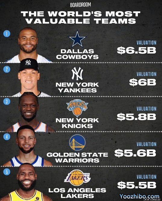 NBA球队最新市值出炉!尼克斯无悬念排第一,湖人55亿仍不如勇士