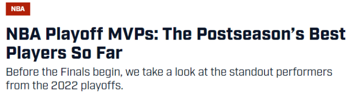 NBA东西部决赛已经结束,美媒SI体育画报评选出今年季后赛MVP前十榜单,巴特勒力压众人排名第一,库里排名第二和塔图姆排名第三;今年季后赛,巴特勒场均27.4分7.4篮板4.6助攻2.1抢断,命中率50.6%,东决G6和G7的表现太令人动容。
