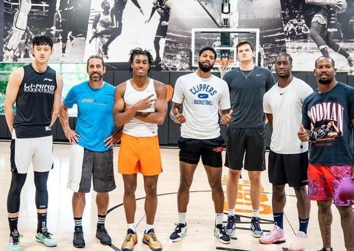 近期,保罗乔治在社交媒体上晒出带着曾凡博特训的照片,乔治也配文表示“向最优秀的人学习,并成为最好的人。