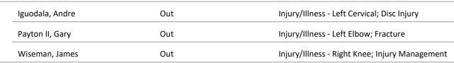 24直播网05月18日讯 ,勇士和独行侠进行训练,备战明天开打的西决首战。勇士在自己的训练馆进行训练,而独行侠则在大通中心进行训练。NBA官方伤病报告出炉,四名球员将缺席西决G1的比赛,独行侠一方缺席的是小哈达威,他已经因伤赛季报销,而勇士一方缺席的是伊戈达拉(颈椎伤病)、小佩顿(左肘骨折)和怀斯曼(右膝伤病)。波特已经从伤病名单上消失,他预计能在G1复出。