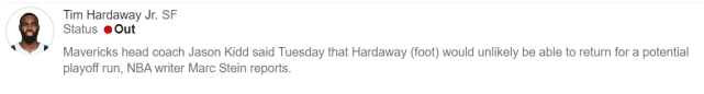独行侠一方,东契奇和队友们在大通中心进行训练,有记者拍到东契奇和博班玩起了1v1斗牛,在对方防守下,两人飙起了三分球。训练结束后,记者问东契奇打西决会不会紧张。东契奇微笑回应:“我正过着最好的生活,在西部半决赛G7之前,我确实会有些紧张,因为我会想那可能会是我本赛季最后一场比赛,但赢下来之后,我就释然了。现在我想的就是出场打出最好的比赛。”季后赛至今,东契奇场均得到31.5分10.6篮板6.6助攻1.9抢断,三分命中率34.7%。
