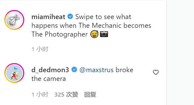 热火方面,洛瑞没有参加今天的球队训练。前方记者表示,他不大可能在东决G1复出,洛瑞因腿筋伤势已经缺席多场比赛。热火官方晒出了今天的训练花絮,戴德蒙客串摄影师,但拍出来的照片令人难以恭维。他还把斯特鲁斯拍糊了,热火官推晒照调侃时,戴德蒙还开玩笑回复:“斯特鲁斯把相机搞坏了。”