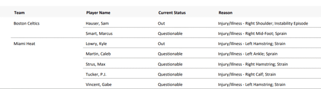 东决G1伤情出炉!两人缺阵五人出战成疑,塔图姆率队飞赴迈阿密