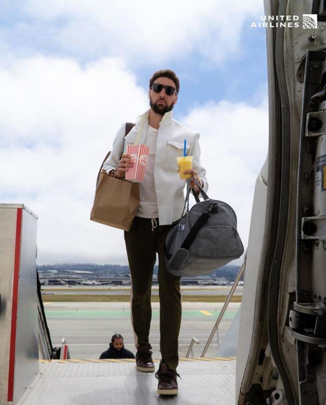 库里摊开双手,歪戴的帽子颇有喜感,他斜挎着一个包,而手提纸袋里露出了爆米花的袋子。库里是爆米花爱好者,还曾给联盟所有球馆的爆米花打分。在旅途中享受一袋爆米花,无疑是不错的选择。
