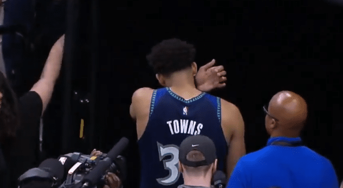 最后24.4秒,贝弗利出手三分球不中,篮下的唐斯把球碰出界,森林狼希望彻底破灭;