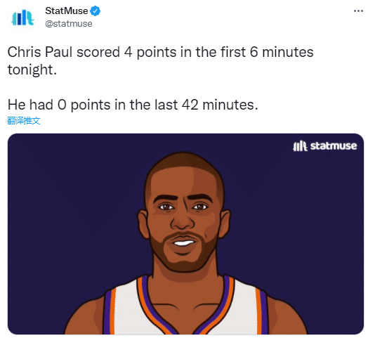 为何保罗突然状态全无?鹈鹕随队记者Oleh Kosel报道,在中场休息时,保罗看起来不舒服,每一次投篮后他的左手都不适;NBA球迷sreekyshooter赛后提到这件事,发推写道:如果关于CP3伤了他的左手并在中场休息时让医务人员检查的报道是真的(他在第四节基本上没有带球),太阳队就完蛋了!这将是非常不幸的!