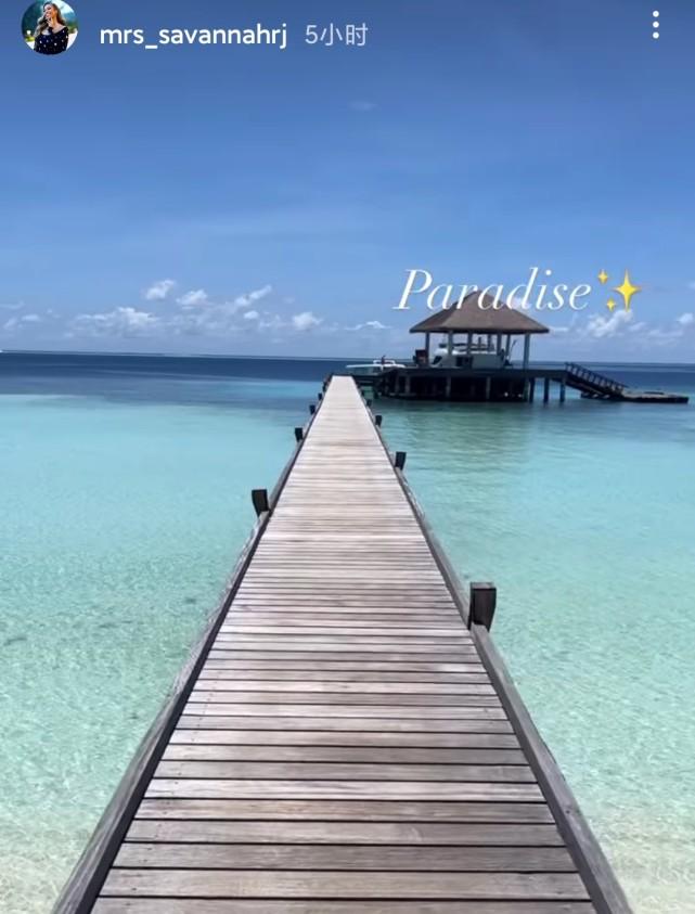 比起老詹,詹嫂似乎更享受假期,她更新社媒,晒出了酒店附近的海景,并配文写道:“天堂!”