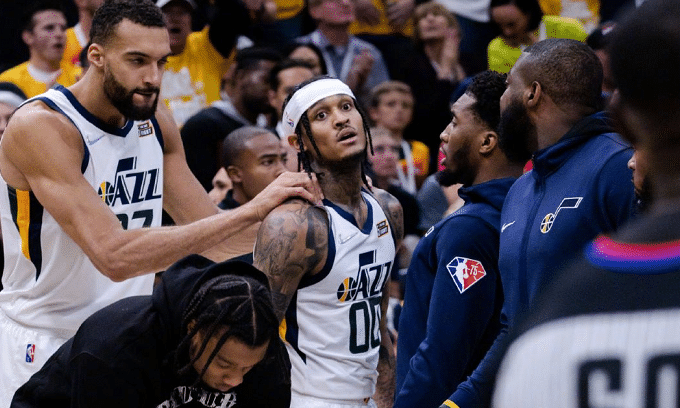 这俩不中的时候,爵士有迎面有冲锋枪吐吐,愣是没被打着的感觉….爵士躲过一劫,系列赛打平,可卢卡归来的第一场的表现,让人觉得爵士输是早晚的事。