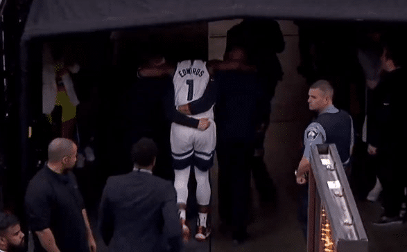 从慢动作来看,爱德华兹的受伤是非常突然的,而且在没有任何对抗的情况下突然捂住了自己的膝盖。爱德华兹随后回归,被证明是虚惊一场。但爱德华兹此后的比赛表现比较糟糕,看起来对于膝盖还是存在疑问。