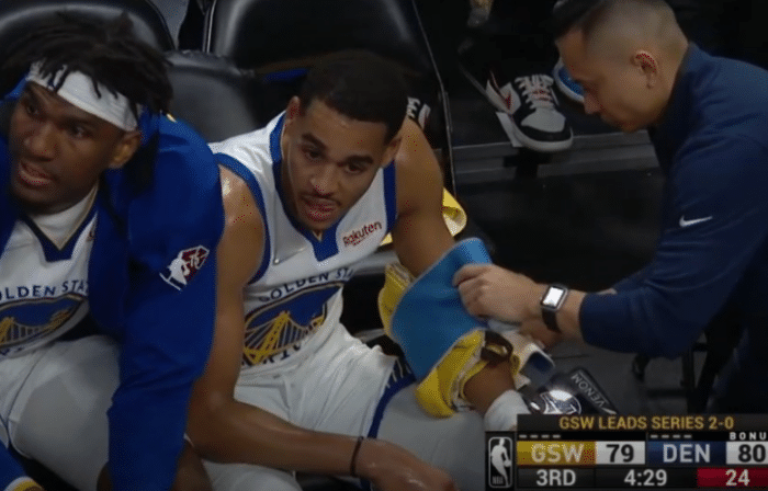 第二节,普尔的手感依然不错,他半场比赛8中6得到16分。小佩顿外线命中两记三分球,末段库里连续得分。勇士单节又轰下35分,进攻势头非常凶猛。掘金方面防守糟糕,进攻端勉力支撑。半场结束,掘金59-69落后10分。