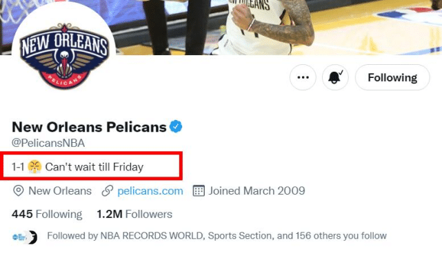 24直播网04月20日讯 ,鹈鹕125-114爆冷击败太阳,鹈鹕队也第一时间冲上全美热搜的第一位,喜欢整活的鹈鹕官推又改了简介。他们写道:“1-1,等不及周五(G3的当地比赛时间)了!”鹈鹕官推还晒出了英格拉姆本场的数据,37分11篮板9助攻,生涯第2场季后赛,莺歌确实状态炸裂!