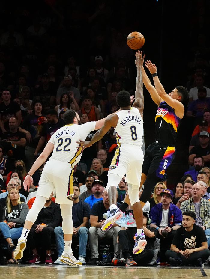 24直播网04月20日讯 ,NBA季后赛太阳主场再战鹈鹕,布克上半场出战17分钟,18投12中、三分10中7轰下31分2篮板1助攻,布克打疯了,17分钟31分创纪录引热议,太阳官方狂吹:你不是人类。