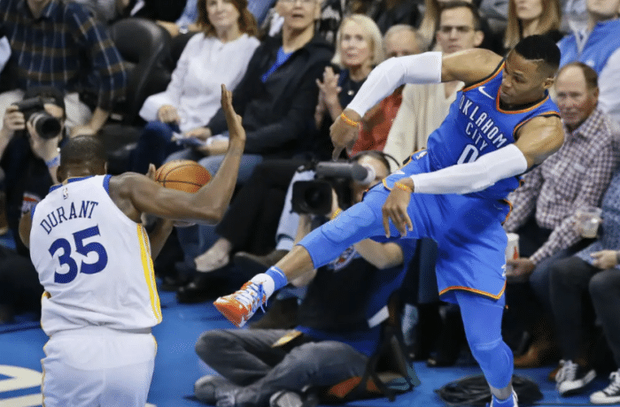 24直播网04月19日讯 ,雷霆总经理普雷斯蒂接受媒体采访,公开盛赞昔日的雷霆三少,直言:杜兰特是篮球之神,哈登是篮球天才,威少是篮球战士,还表示:我们不是在和自己的过去竞争。
