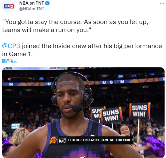 谈到保罗的表现,太阳主帅蒙蒂表示:这就是经典的克里斯,他在正确的时间接管了比赛,这也是我们需要的。