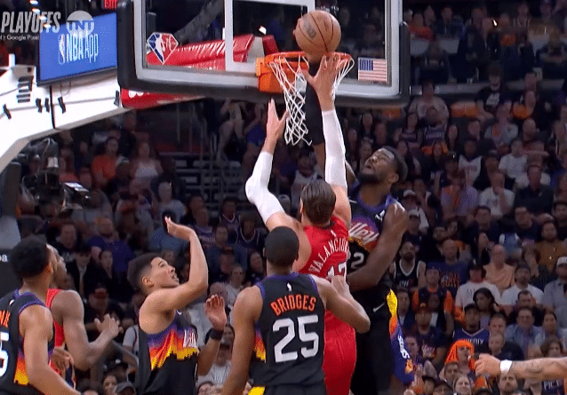 保罗一顿操作带领太阳领先两位数;3分13秒,艾顿的头部被琼斯撞到,被撞晕了,所幸艾顿没事,继续留在场上,一番对战,布克罚球全场高呼MVP,保罗上篮杀死比赛,最终太阳拿下胜利。