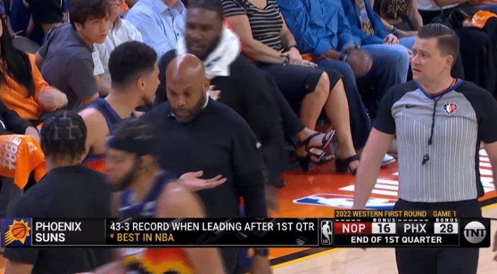 比赛正式开打,布克开场迎着英格拉姆的长臂轰进三分,助攻艾顿禁区抛投得分;保罗抢断,助攻布克反击打成2+1(罚球没进),上篮时被海耶斯打到面部;太阳反击,保罗助攻布克轰进底角三分,艾顿连续轻松得分,约翰逊炸裂空接暴扣,布克大号两分,太阳第一节28-16领先鹈鹕12分。
