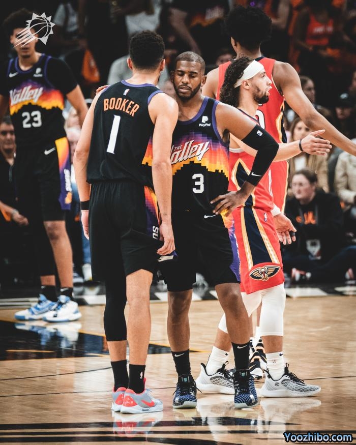下半场,第三节前半段,保罗晃晕海斯并且干拔得分,布克连续命中三分以及外线造犯规三罚全中,太阳65-42领先到23分,随后太阳进攻停滞,鹈鹕16-4疯狂追分,单节37-26追回11分,三节打完太阳仅领先8分。