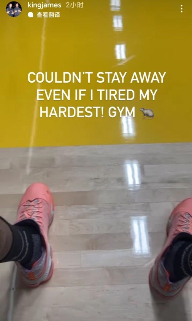 24直播网04月16日讯 ,詹姆斯更新社媒,晒出了自己在球场训练的动态,配文写道:“即使再累我也不能远离(训练)!球馆耗子。”在英语中,“球馆耗子”指的是训练狂人,詹姆斯自称“球馆耗子”,也是表达了自己一刻也离不开训练馆的心情。