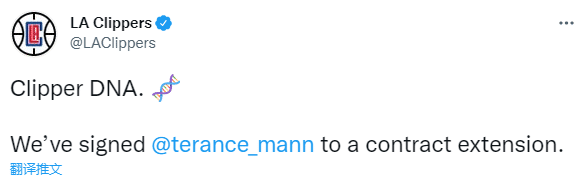 24直播网10月13日讯 ,洛杉矶快船正式续约特伦斯-曼恩,24岁曼恩和快船提前续约2年2200万美元新合同,未来四年继续留在快船;快船新星曾当小卡替身,季后赛狂砍39分助球队杀进西决。