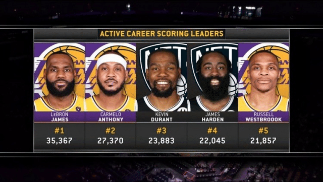 24直播网讯 距离新赛季的大幕拉开越来越近,最近美国媒体统计了新赛季得分榜排名前五的球员,令人意外的是,前五球员基本上都集中在湖人和篮网这两支球队当中,那么现役得分榜历史前五的巨星都有谁呢?我们一起来看一下吧!