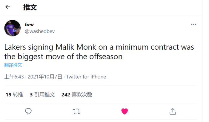 “湖人用底薪合同签下蒙克是球队在休赛期最重大的操作!”