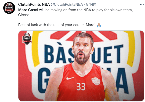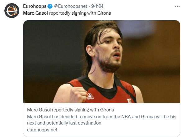 24直播网9月13日讯 ,36岁小加索尔将会离开NBA并且重返西班牙联赛,据欧洲媒体EuroHoops的报道,马克-加索尔将会签约西班牙的赫罗纳篮球俱乐部,小加索尔将在自己的球队结束职业生涯。