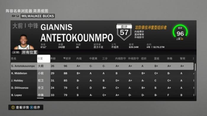 作为卫冕冠军,雄鹿新赛季想卫冕的话难度可不低,休赛期阵容调整不大,把塔克送走了,得到了胡德、奥杰莱以及格雷森阿伦!字母哥96,米德尔顿88,霍勒迪85,依旧是三巨头带队,上赛季已经看到了他们三人组合的威力。字母哥冲锋陷阵,米德尔顿要负责把空位的球投进,霍勒迪是组织和外线防守尖兵!