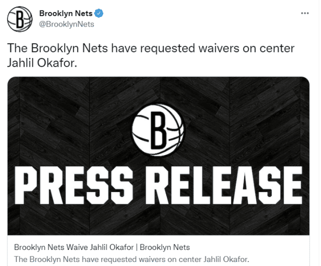 篮网裁掉奥卡福后,跟队记者Kristian Winfield表示这不令人感到意外,Matt Brooks表示篮网还需再裁一人。和奥卡福一起被换到篮网的敦布亚,以及篮网此前签下的本布里,都有可能成为下一个离开名单的人。从敦布亚最新的社媒信息来看,他已经抵达布鲁克林,但他最近陷入年龄造假的传言。篮网官媒昨天刚刚晒出了本布里的训练照。他们俩很可能要通过训练营和季前赛的表现,来竞争最后一个留队名额。