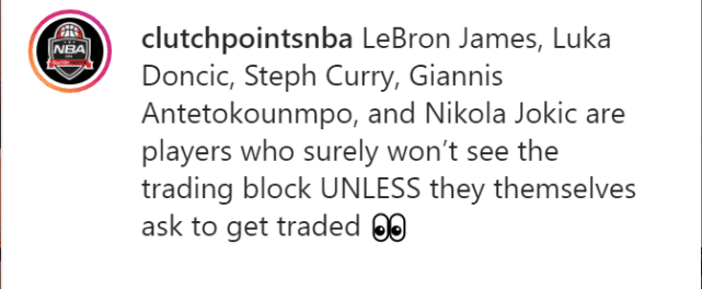 24直播网讯 当今联盟中,有哪些球星是真正的非卖品?北京时间9月4日,美媒clutchpoints列出了现役五大非卖品,他们分别是詹姆斯、库里、东契奇、字母哥和约基奇。“除非他们自己要求,否则这些球员是不可能被球队交易的。”美媒评价道。