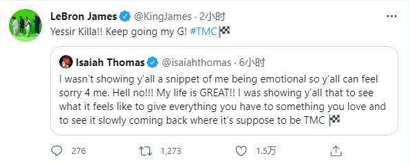詹姆斯转发小托马斯的推文,鼓励前队友:没错,杀手!继续努力吧,我的兄弟!