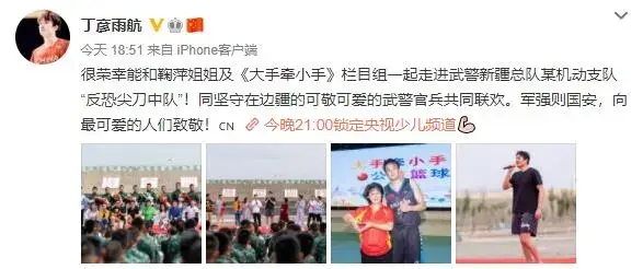 而同样一直受关注却相当神秘的丁彦雨航,终于有了新消息,携手央视同坚守在新疆武警官兵联欢。