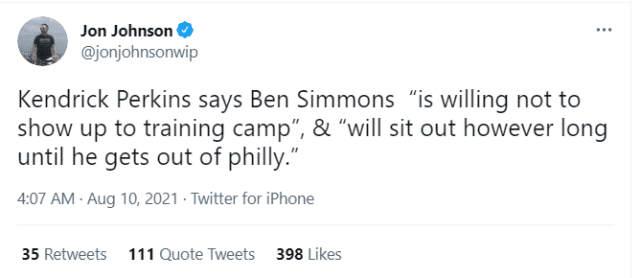 24直播网讯 北京时间8月10日,据名嘴帕金斯透露,本-西蒙斯根本不打算参加76人的训练营,这种状态将一直持续到离开费城。现在来看,西蒙斯和球队之间的关系已经破裂,自从东部半决赛出局后,西蒙斯就没有和球队保持联系,有消息称,恩比德给他打过几次电话,他都没接。