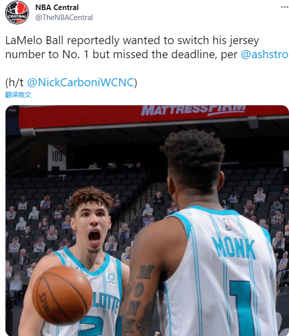 19岁的三球在澳洲联赛打球时就身穿1号球衣,被黄蜂选中进入NBA之后,由于蒙克身穿黄蜂1号,最终鲍尔改穿2号开启NBA生涯;如今蒙克已经加盟湖人,三球想要把2号换成1号,特别想改穿1号,不过三球已经错过了向联盟申请换号的最后期限,他恐遭联盟拒绝从而无法在新赛季改穿1号。