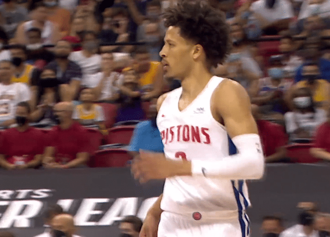 24直播网讯 北京时间8月9日,在活塞和雷霆比赛中,19岁的状元凯德-坎宁安正式迎来NBA夏联首秀,全场出战26分钟17投5中、三分7中2拿到12分6篮板2助攻2抢断2盖帽以及5失误,开场两记三分十分惊艳,但全场投篮手感并不好,而且身体对抗能力偏差,他要成为下一个东契奇还有很长的路要走。