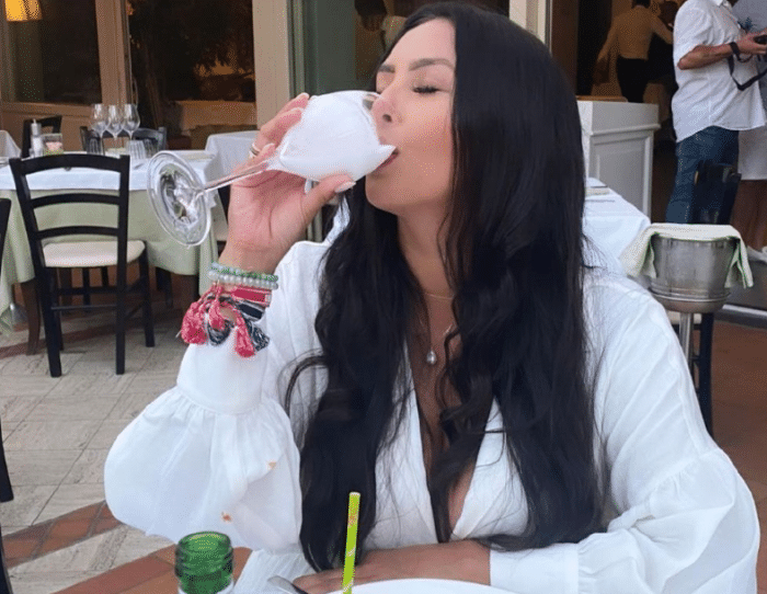 瓦妮莎身着一袭白衣,十分惊艳,她的身材十分傲人,年轻时期的瓦妮莎,就是NBA最美丽的太太之一,如今,风韵犹存,依旧是众人眼中的焦点。虽然已经39岁了,而且是4个孩子的母亲,不过岁月在瓦妮莎的脸上没有留下痕迹,她看起来还像是20多岁的少女。瓦妮莎闭着眼喝饮料,非常优雅。