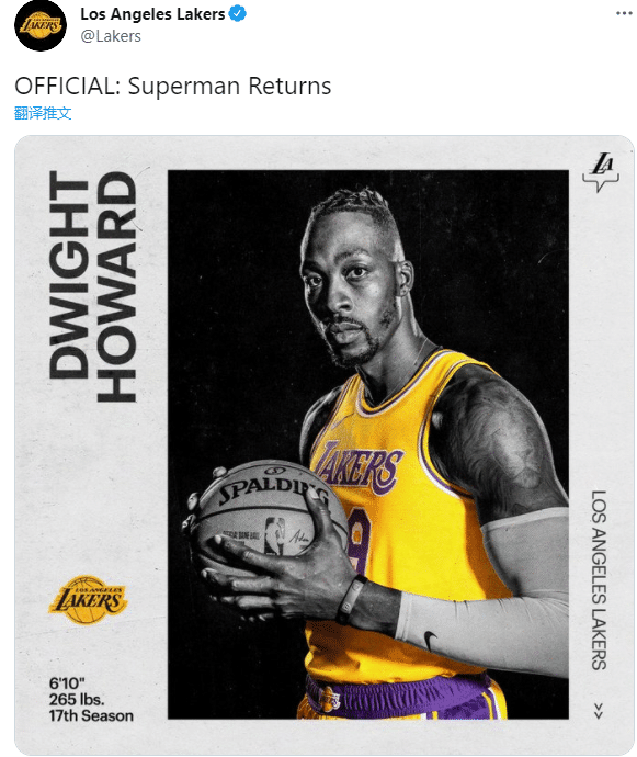 霍华德还表示夺冠需要牺牲,专注于篮板和防守;霍华德将继续穿湖人39号球衣。