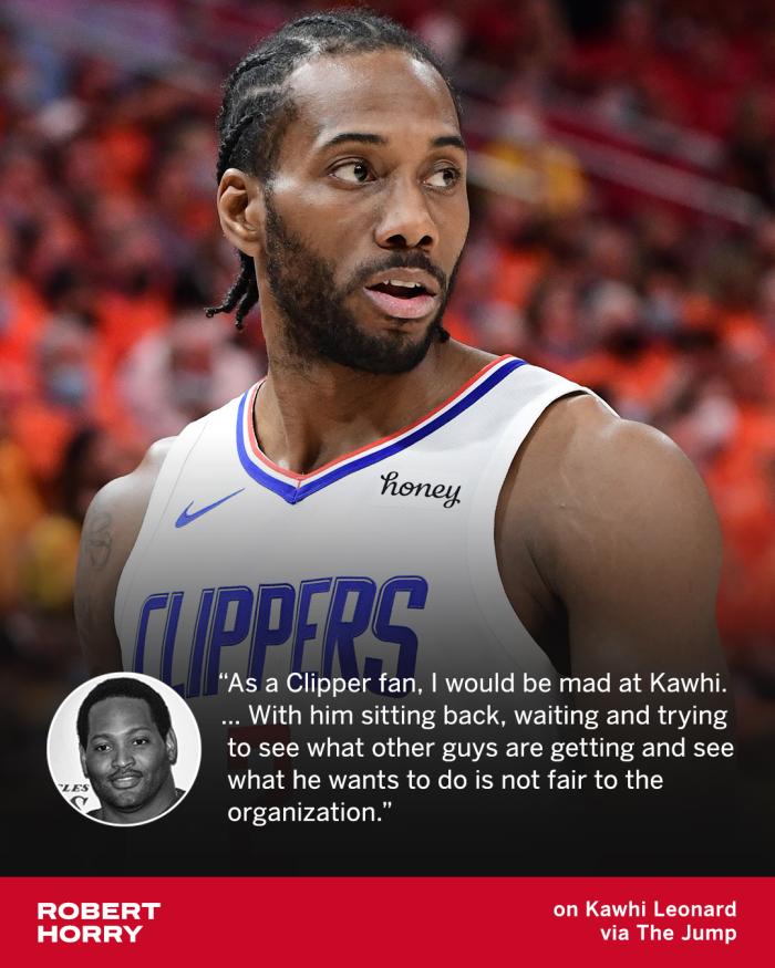 24直播网讯 快船巨星莱昂纳德迟迟不续约遭怒喷,NBA七冠王罗伯特-霍里质疑小卡,他表示:作为一名快船球迷,我对小卡很愤怒,他坐在幕后等等着看其他人能得到什么,然后再做自己的决定,这让快船陷入糟糕的处境之中,这对快船太不公平了。