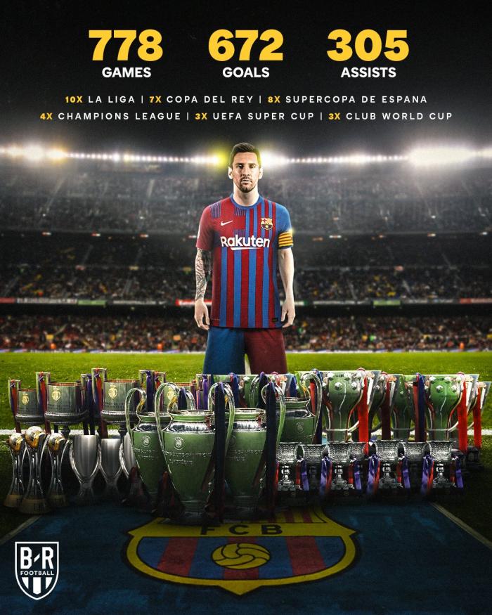 “一代球王”梅西正式离开巴萨,这意味着一个时代的结束,无数巴萨球迷跑到主场球馆外,都是一脸的难受和无奈,更有人跪地痛哭;梅西16年生涯荣誉无数——打了778场比赛,踢进672球送出305次助攻,夺得35座冠军奖杯。