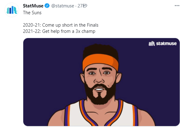 麦基是NBA现役三冠王——17年和18年跟随勇士夺冠,20年跟随湖人夺冠;太阳引援三冠中锋麦基,最大目的就是给艾顿找替身;今年季后赛,太阳就是吃了艾顿下场后内线没人的亏,预计麦基将会担任艾顿的替补。