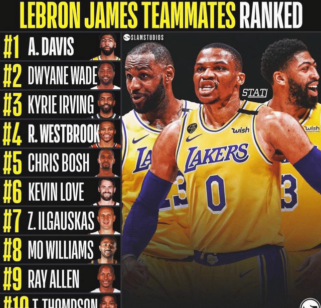 24直播网讯威斯布鲁克加盟湖人后,有美国媒体排出詹姆斯职业生涯十大队友。戴维斯排名第一,威斯布鲁克排名第四。接下来,文章带您看看具体的情况。