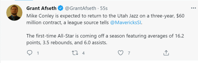 24直播网讯北京时间8月1日,据NBA记者Grant Afseth报道,消息源透露,33岁的迈克-康利计划和爵士签下一份3年6000万美元的合同,此前,曾有记者爆料称康利可能签到一份3年7500万的合同,现在来看,他应该同意降薪留队了。